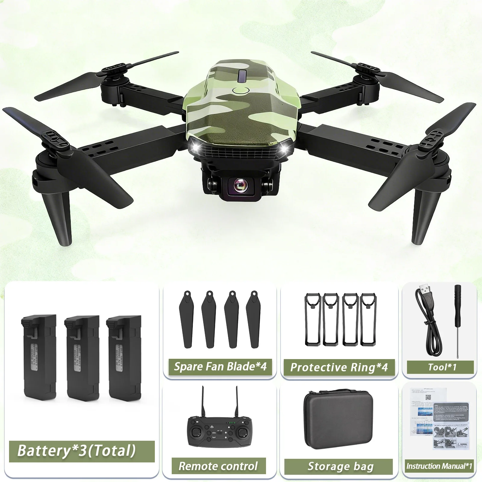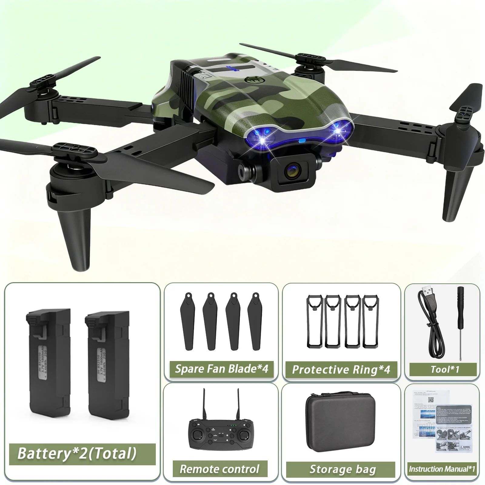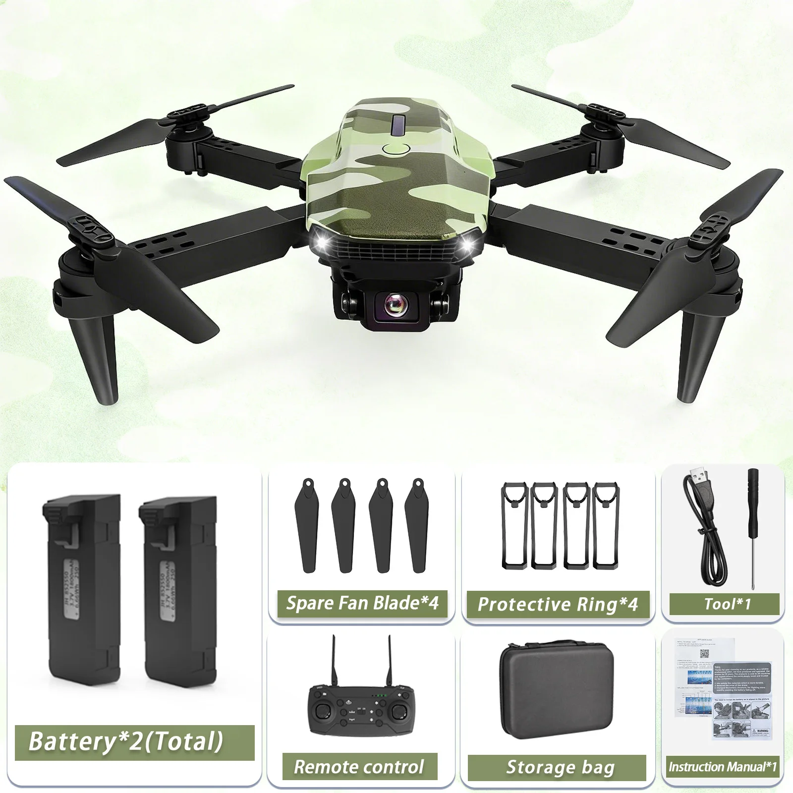 Camouflage Folding Remote-Controlled Drone – Beginner-Friendly HD Camera, Positioning & Tracking Battery Refill Pack