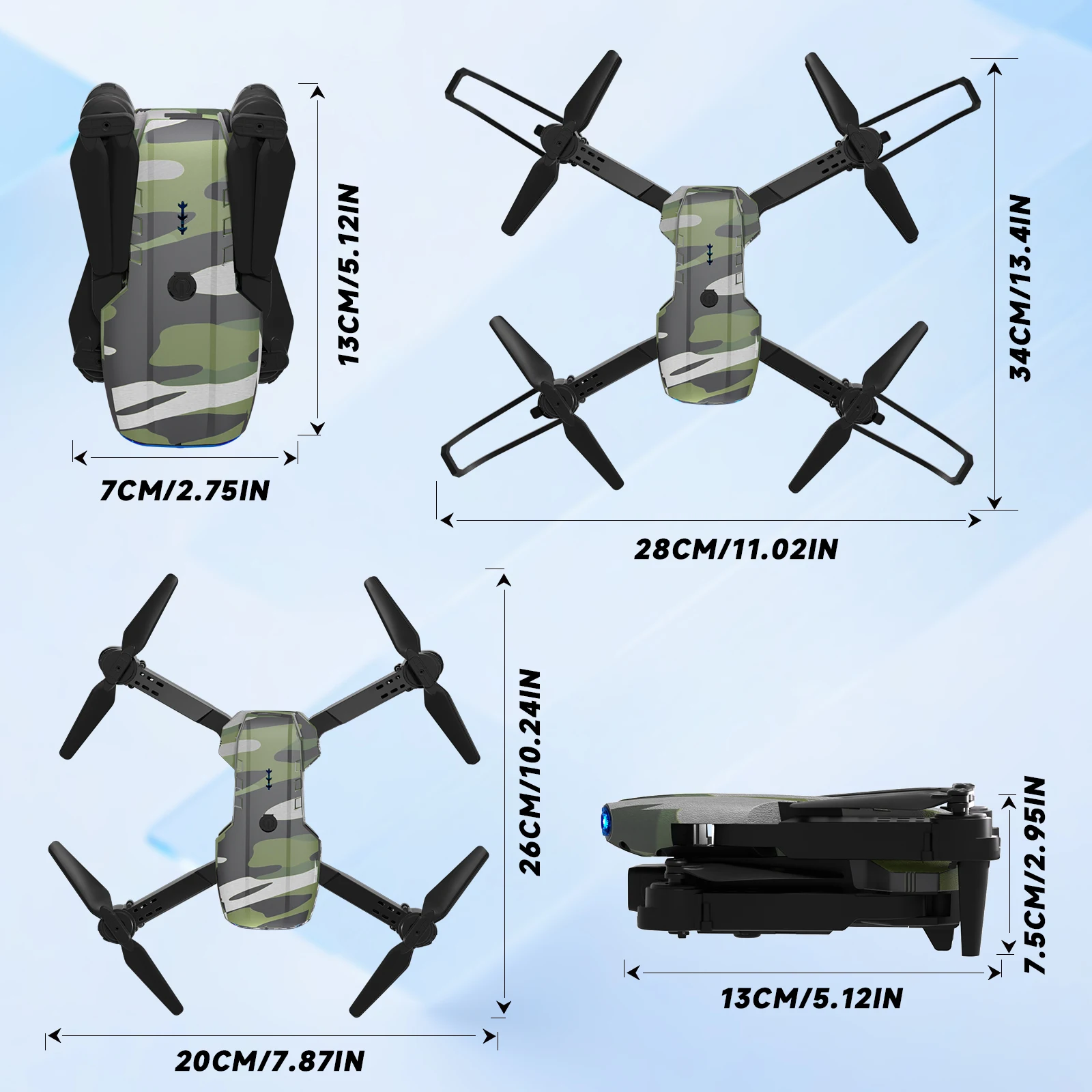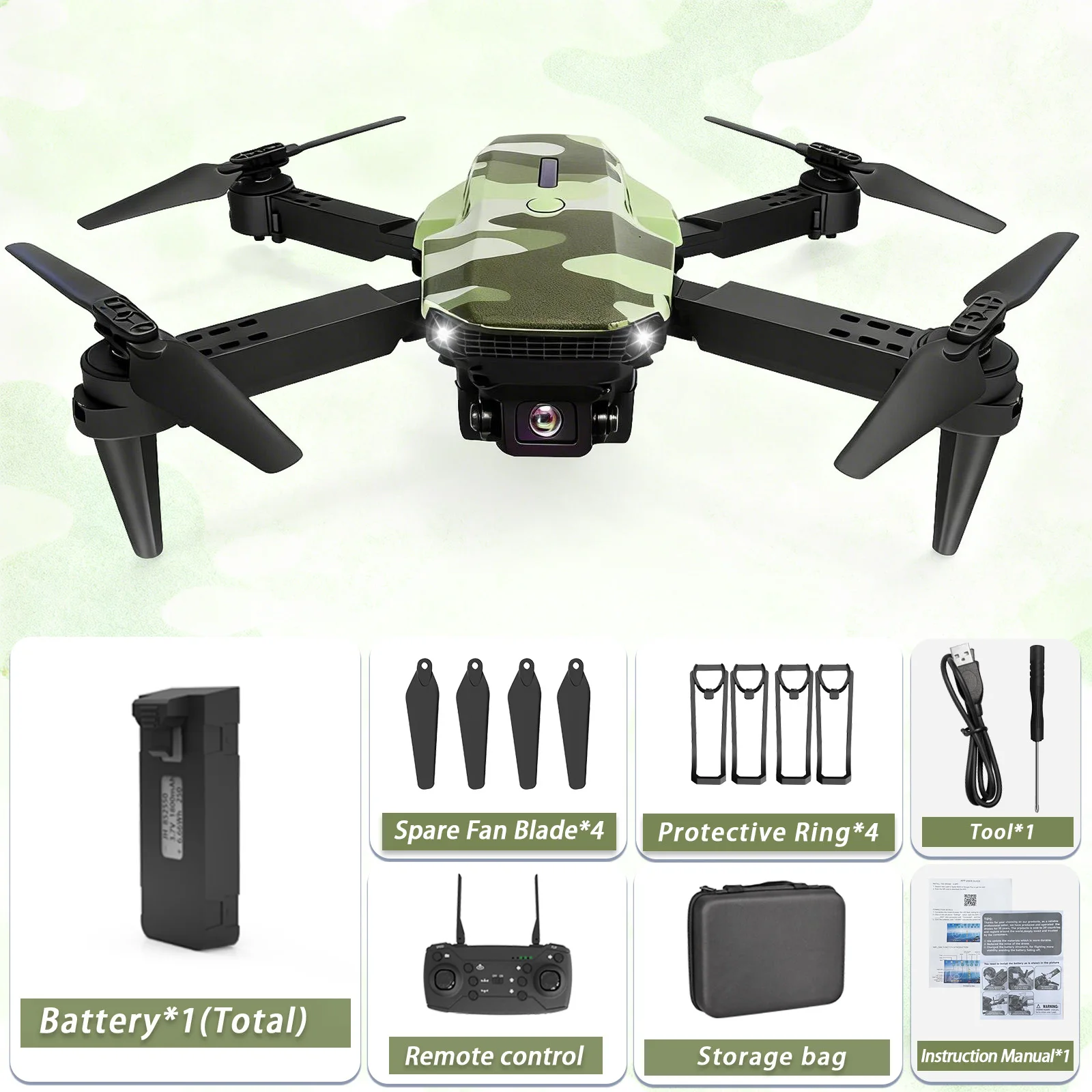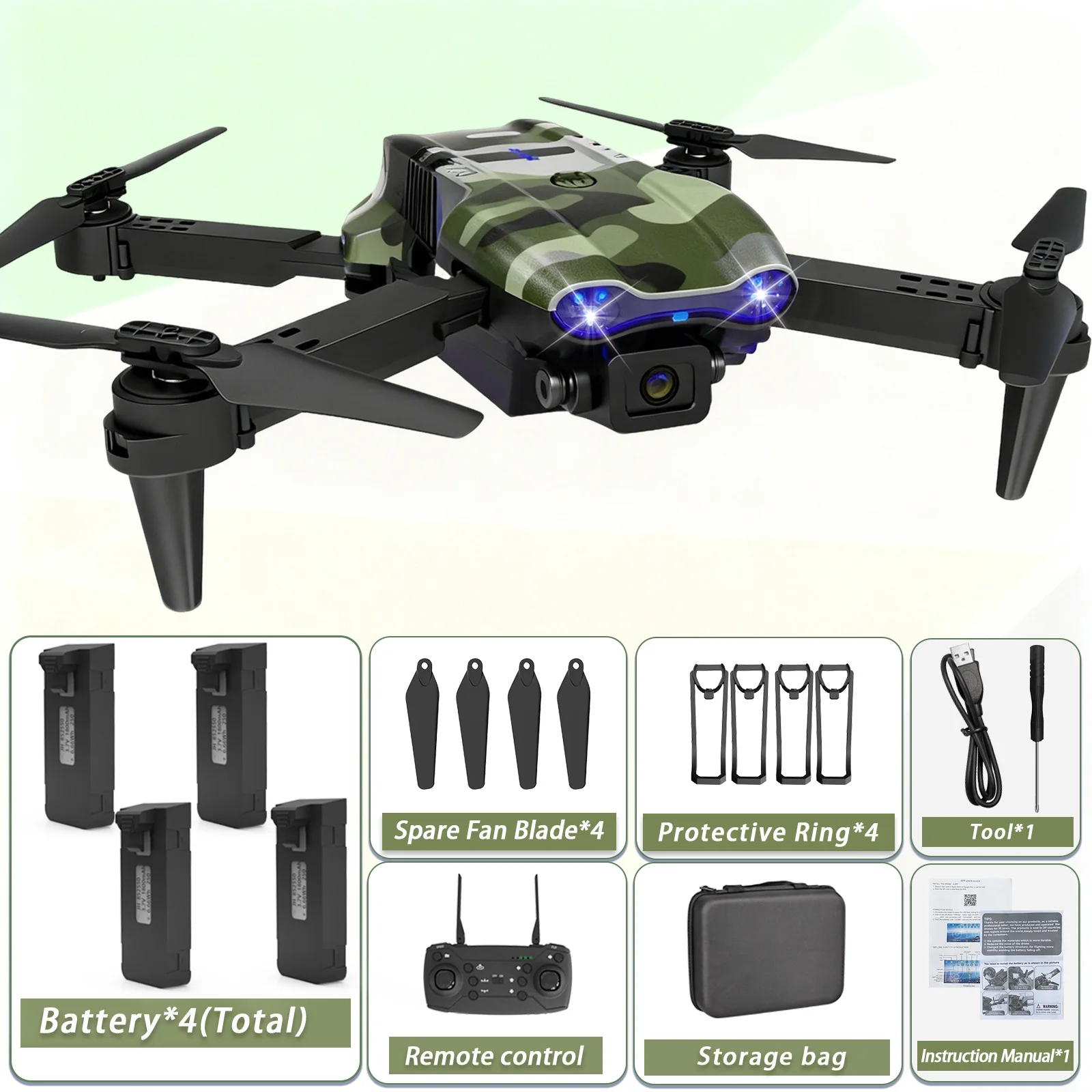 Camouflage Folding Remote-Controlled Drone – Beginner-Friendly HD Camera, Positioning & Tracking Battery Refill Pack