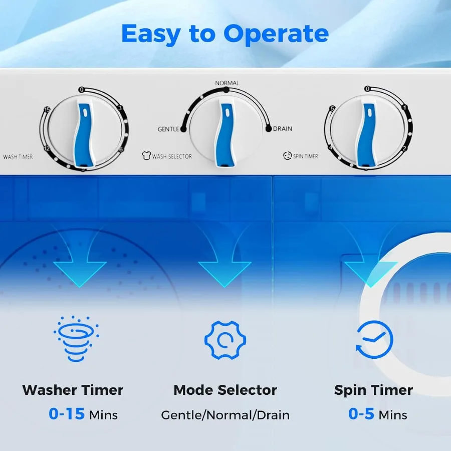 Portable Washing Machine 17.6lbs Compact Washer Spinner Combo with Pump Drain for Apartment RV Dorm College Twin Tub Design wit