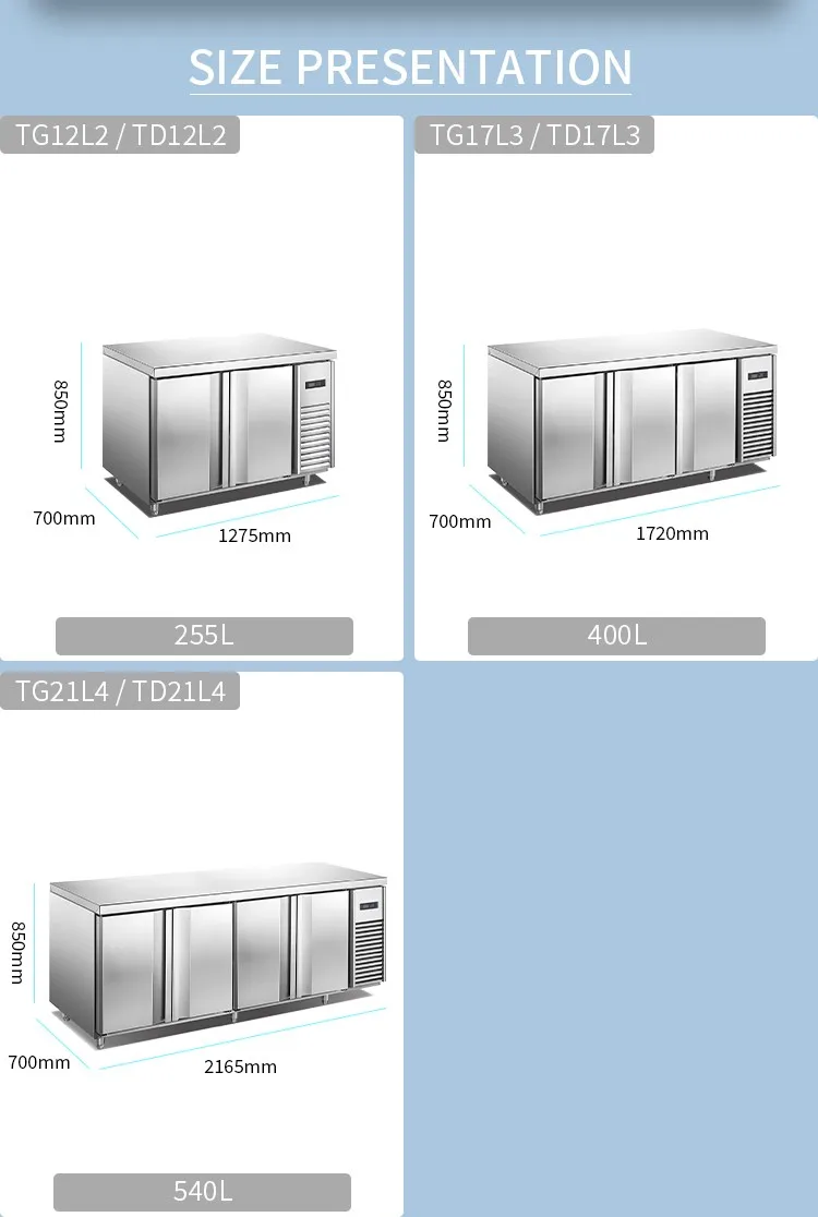 Refrigerator 2 Doors Commercial Hotel Equipment Freezer Refrigeration Equipment Table Under Counter Refrigerator