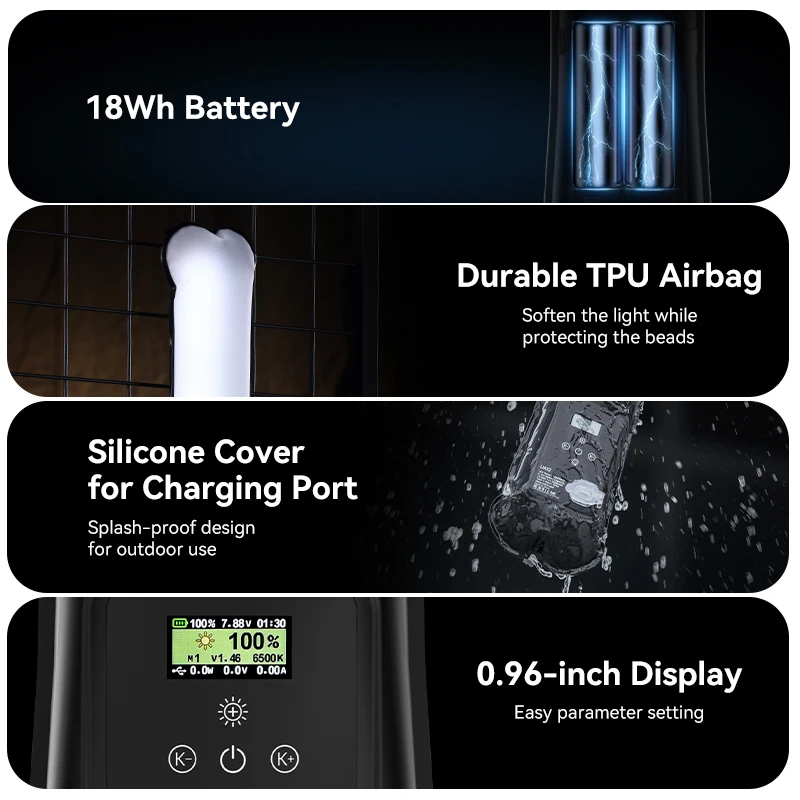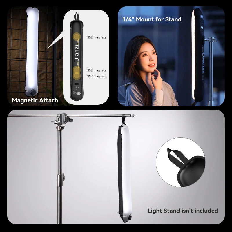 Ulanzi UA12 12W Inflatable TPU Air Tube Light 2700K-6500K Bi-Color Portable Pocket Light Stick Magnetic Mount for Livestreaming