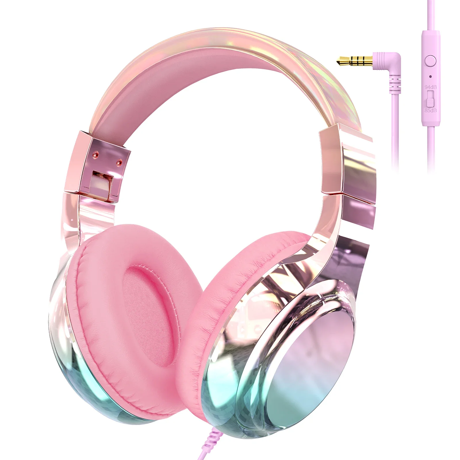 Wired Kids Headphones for School 85/94dB Volume limited Over Ear Headphones for Kids Girls Foldable Gaming Headset with Mic